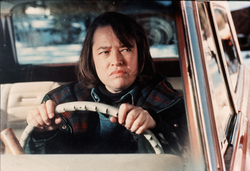 表情がアップでとらえられるのはアニー役のキャシー・ベイツも同様だ。ただし、こちらはポール以上に感情の振り幅が大きい。喜怒哀楽や機嫌の良し悪しがはっきりわかる。人の良いご婦人として登場したかと思ったら、悪質なクレーマーのように大声でわめきたてたり、目に狂気を宿らせたり、かと思うと恋する少女のようにポールを見つめてみたり。が、それらがいつどのタイミングで出てくるのかわからないから、彼女が登場する度に空気が張り詰める。