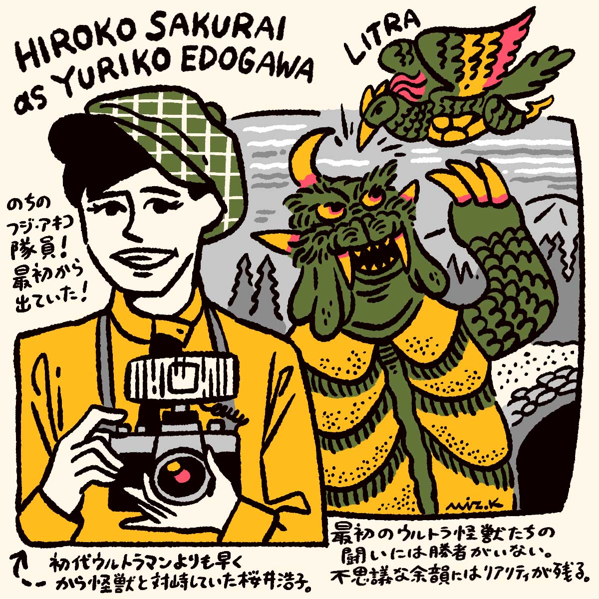後のシリーズに通じる要素は怪獣だけではなく、出演者にも見ることができる。当時すでにゴジラなどの怪獣シリーズに出演経験のある俳優や、のちの特撮作品で存在感を残す人物が多く顔を見せる中、特に桜井浩子は印象的だ。彼女は『ウルトラマン』で科学特捜隊のフジ・アキコ隊員を演じることになるが、『ウルトラQ』ではフォトグラファー兼記者の江戸川由利子役として、すでに最初期から怪獣と対峙していたのだ。この存在感がシリーズの序章としての色を強めてもいる。