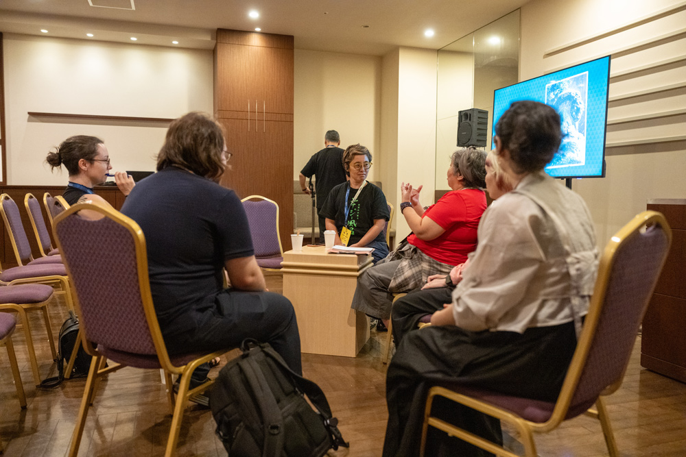 中央)加賀市からのSensei、アーキビスト/キュレーターの明貫紘子さん。講演後、参加者は明貫さんと対話を重ねながら、洞察を深めていく。