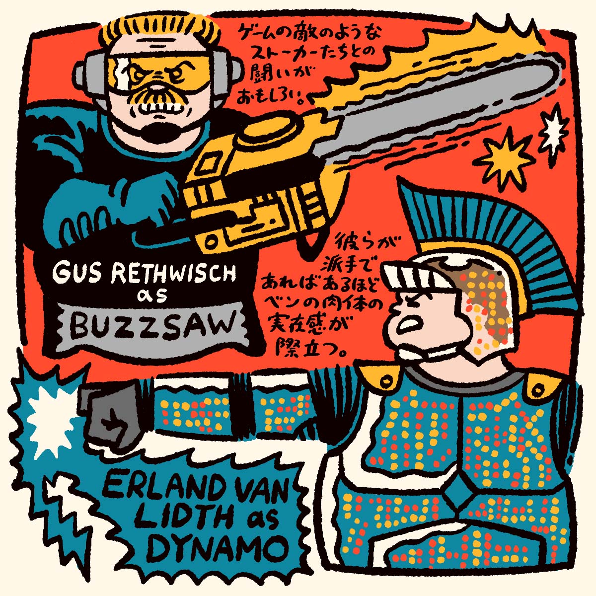 ストーカーたちはテレビ番組や産業のジャンルそのもののようでもある。アイスホッケー選手の姿をしたサブゼロはスポーツ、バズソーは工業、ダイナモはショービジネス。業を煮やしたキリアンが送り込むファイアボールは、さしずめ軍事の象徴だろう。